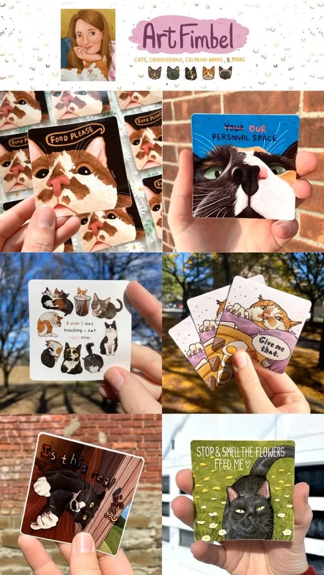 Featured Products Vinyl Kitty Stickers Premium Art Prints Coloring Books Custom Illustrations Wholesale via Faire Browse More Cat Products Custom Keychains and Pins Upcoming Events Featured Mar 7 Mar 7, 2026 – Mar 8, 2026 Albany Marriott New York Women's Expo Mar 7, 2026 – Mar 8, 2026 Albany Marriott Mar 7, 2026 – Mar 8, 2026 Albany Marriott Mar 11 Mar 11, 2026 Empire State Plaza Concourse St. Patrick's Day Celebration Mar 11, 2026 Empire State Plaza Concourse Mar 11, 2026 Empire State Plaza Concourse Mar 28 Mar 28, 2026 Colonie Central High School CCHS Think Spring Artisan Expo Mar 28, 2026 Colonie Central High School Mar 28, 2026 Colonie Central High School Apr 25 Apr 25, 2026 Cobleskill Fairgrounds Schoharie County Maple Festival Apr 25, 2026 Cobleskill Fairgrounds Apr 25, 2026 Cobleskill Fairgrounds Apr 26 Apr 26, 2026 Washington Park A Big Gay Market 🌈 Apr 26, 2026 Washington Park Apr 26, 2026 Washington Park May 16 May 16, 2026 Highland Park The 128th Rochester Lilac Festival May 16, 2026 Highland Park May 16, 2026 Highland Park May 17 May 17, 2026 Highland Park The 128th Rochester Lilac Festival May 17, 2026 Highland Park May 17, 2026 Highland Park May 31 May 31, 2026 Sand Lake Merchant & Sand Lake Center for the Arts Spring Merchant Market at Sand Lake May 31, 2026 Sand Lake Merchant & Sand Lake Center for the Arts May 31, 2026 Sand Lake Merchant & Sand Lake Center for the Arts You can find Art Fimbel at a craft fair or farmer’s market almost every Saturday and Sunday from May to December. During the week, you can also find us at the occasional weekday event. View the Full List of Events Here Digital Art Gallery Cats Portraits & People Landscapes, Places, & Nature Traditional Art Recent Instagram Posts